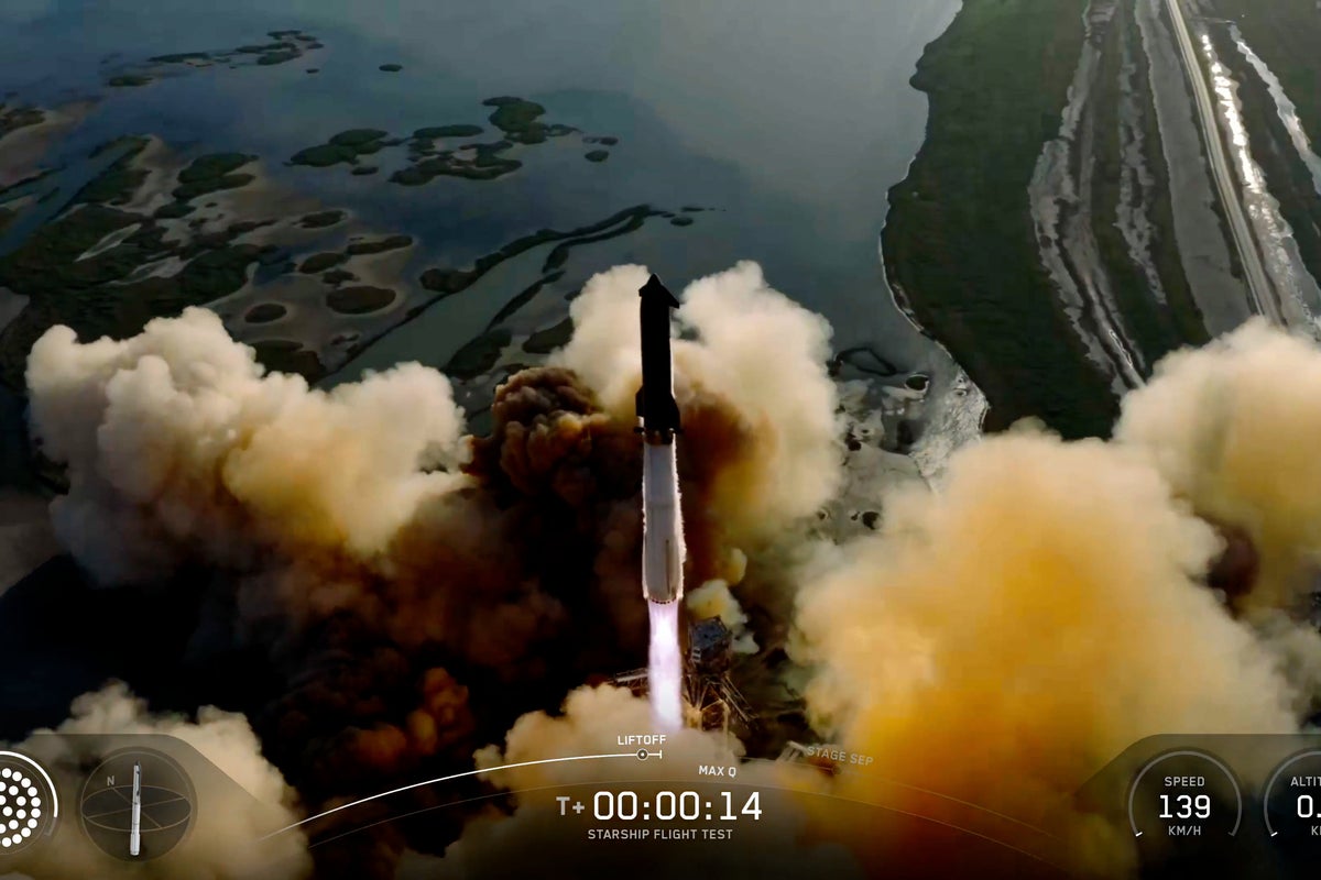 Starship — the biggest and most powerful rocket ever built — thundered into the evening sky from the southern tip of Texas on Monday. The booster was programmed to peel away and drop into the Gulf of Mexico, with the spacecraft skimming space before descending into the Indian Ocean. Nothing was being recovered.