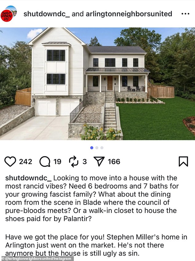 The White House ‘s deputy chief of staff and so-called ‘immigration architect’ Stephen Miller is putting his Arlington home up for sale after it was caught in the crosshairs of activists