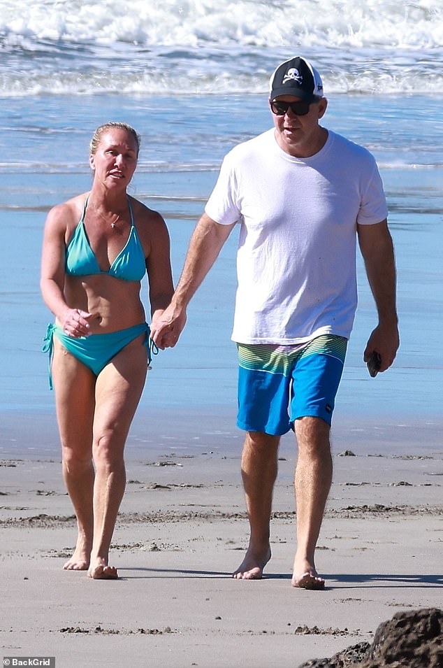 Congresswoman Marjorie Taylor Greene and her fiancé Brian Glenn appeared happy and relaxed as they walked hand-in-hand down along the beach on Christmas Day
