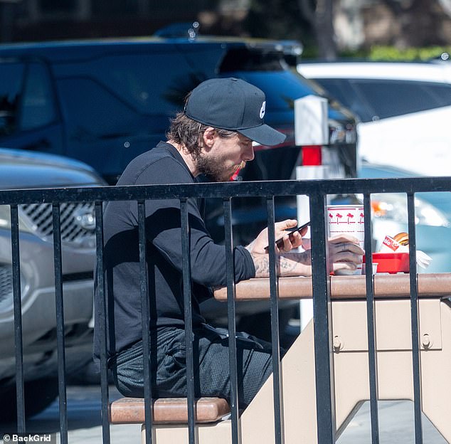 Missing however was their estranged son Brooklyn, who was spotted cutting a solitary figure while stepping out for fast food.