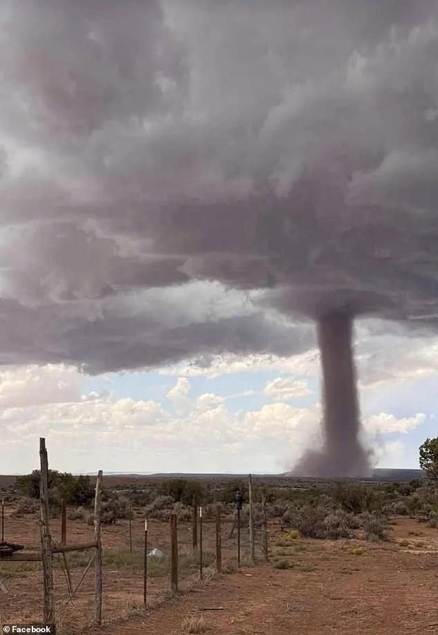 Photos shared by Navajo Police showed the tornado tracking across the open desert terrain – a phenomenon that the state typically sees about three times per year.