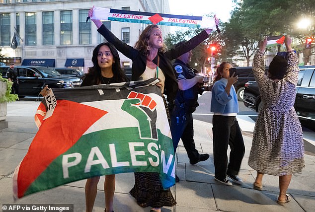 ‘Free DC! Free Palestine! Trump is the Hitler of our time!’ the activists yelled at the president’s face.