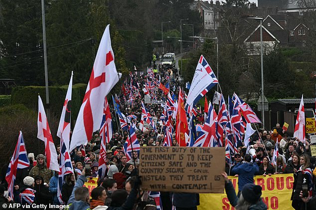 Crowds chanted ‘Keir Starmer’s traitor’ and marched along the roads in the largest demonstration yet since 27 asylum seekers were moved into the barracks under the cover of darkness on Thursday morning.