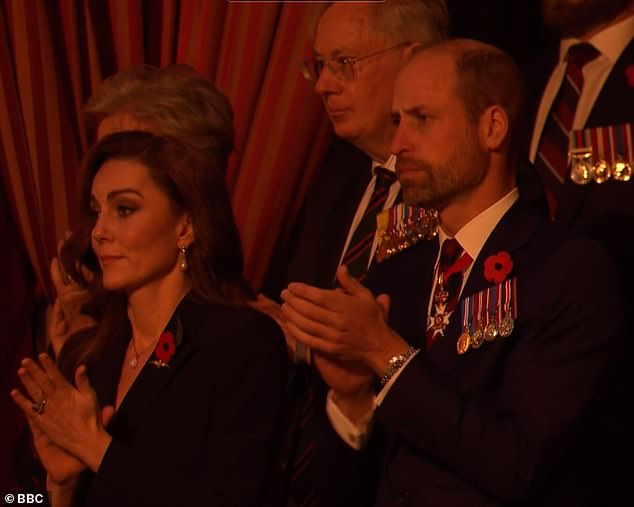 The Royal couple appeared solemn as the applause erupted at the Royal Albert Hall in tribute to the servicemen and women who sacrificed their lives for Britain.