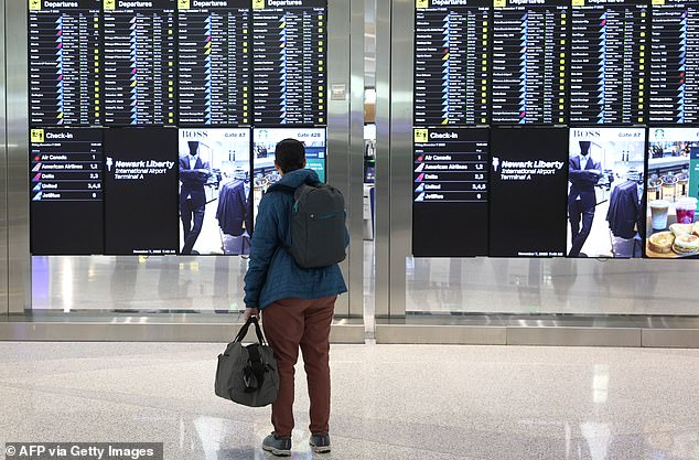 Major delays are still plaguing US airports as the government shutdown rages on, with thousands of travelers hit with major delays. A ground-stop has been issued for Newark Liberty International Airport (pictured) in New Jersey, impacting hundreds of flights Sunday