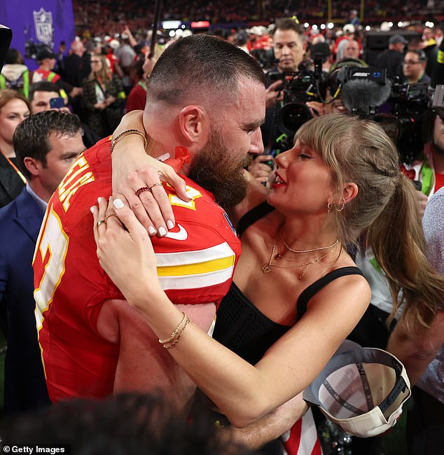 Now, however, doubts have been cast once more over the validity of their romance, with Travis forced to furiously deny his relationship with Taylor is a scam after a ‘leaked’ document revealed a strategy to announce their split.