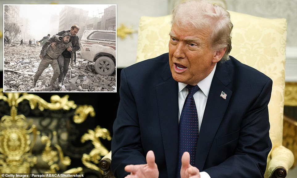 Dozens of Iranian leaders were left dead and Trump says that much of Iran’s military infrastructure and missile systems were taken out in the bombings. Six US service members have died so far, and Trump warns more might be killed in the conflict that he says could last four or five weeks. Trump, however, believes that the conflict is a success so far. ‘We had a very very powerful impact because virtually everything they have has been knocked out now,’ he told reporters in the Oval Office during his bilateral meeting with German Chancellor Friedrich Merz on Tuesday. He added: ‘Their missile count is going way down.’ ‘I’ve never had more compliments on something I did, people felt it’s something that had to be done,’ he boasted. ‘So if we have a little high oil prices for a little while, but as soon as this ends, those prices are going to drop, lower than even before.