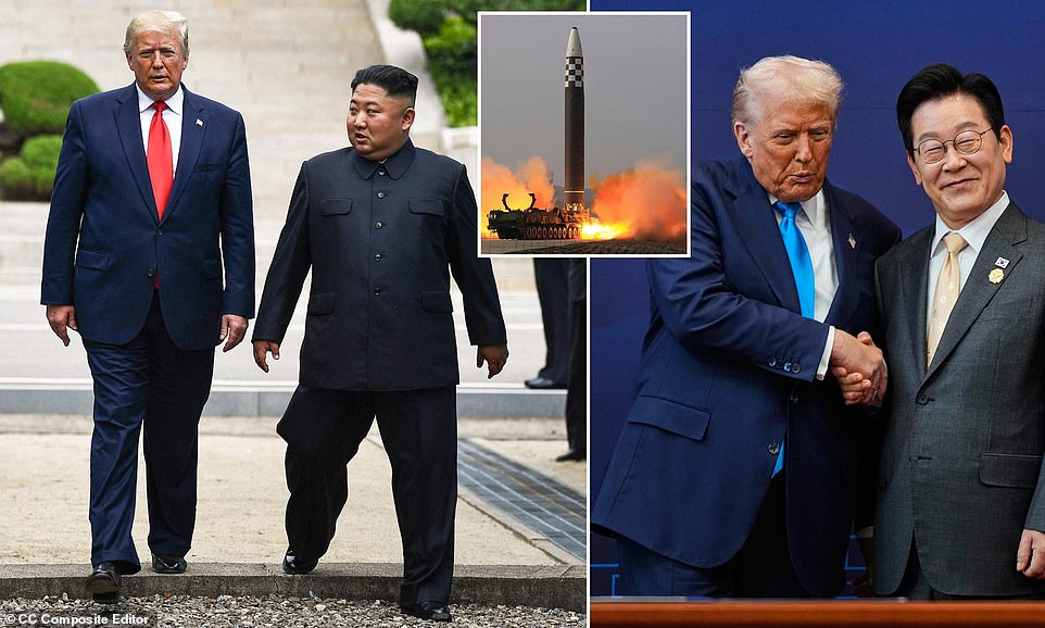 President Donald Trump promised South Korea ‘s president he would help solve the discord between North Korean leader Kim Jong-un and his southern neighbor. ‘I won’t forget the trip, and we’ll be working together, and you have a little bit of a cloud over your country, and we’re going to get that cloud solved,’ Trump told South Korean President Lee Jae Myung at a banquet Wednesday evening. That cloud, previously referred to as ‘little rocket man,’ is Kim Jong-un, the belligerent leader of North Korea.