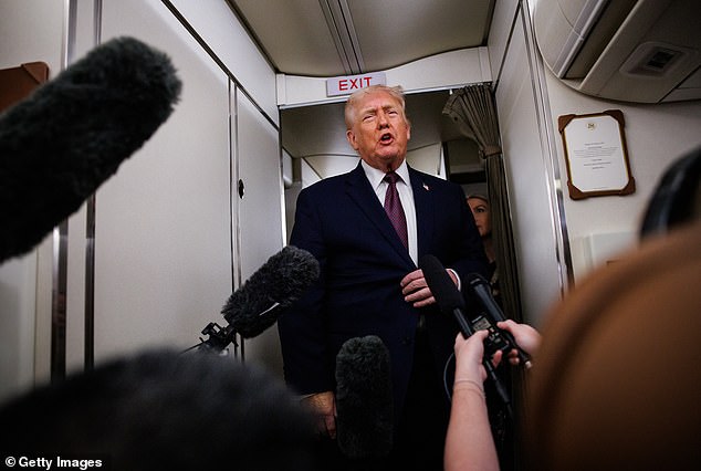 ‘We’re getting rid of a lot of people that are criminals that shouldn’t be in our country,’ Trump said of his deportation efforts on Tuesday morning.
