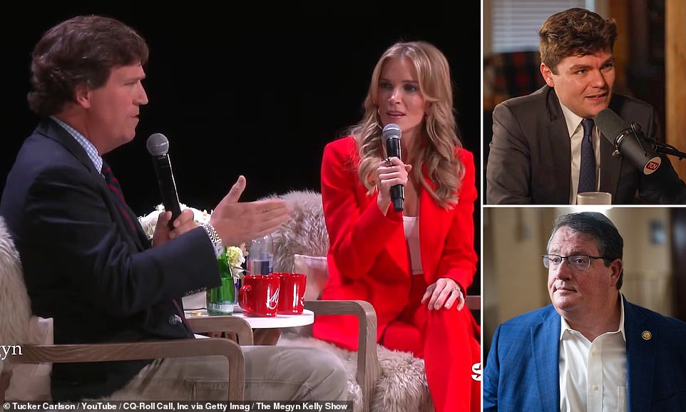 ‘We have a member, a sitting member of Congress . I spoke to the Speaker of the House about this today,’ Carlson told Kelly. ‘We have a sitting member of Congress from Florida, Randy Fine, who was literally texted or put on Twitter : “We should kill them [Palestinians] all, every single one.” Someone texted a picture of, literally… a dead baby, and he laughs at it. ‘And it’s like this guy’s a lawmaker is appropriating money to a military committing genocide, and that’s cool? It’s not cool,’ Carlson continued. ‘Let’s just be honest, that is much worse than anything Nick Fuentes has said, period.’