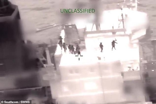 Southern Command and Homeland Security Secretary Kristi Noem both posted unclassified footage on social media of a US helicopter landing on the vessel and US personnel conducting a search of the deck and tossing what appeared to be an explosive device in front of a door leading to inside the ship.