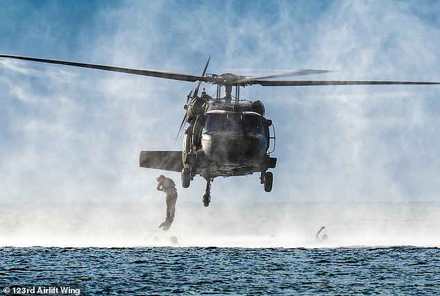 Soldiers jump from a helicopter during a practice operation in the US Virgin Islands as tensions rise between the US and Venezuela