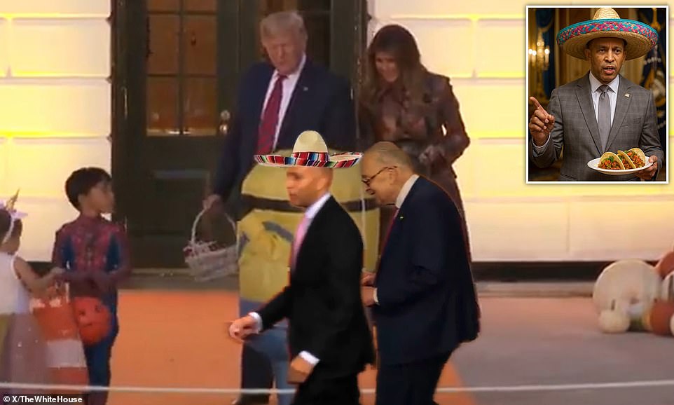 The White House is ratcheting up its battle against top congressional Democrats by employing the latest Halloween social media trends. Trump’s team has been trolling top Democratic leaders, Representative Hakeem Jeffries and Senator Chuck Schumer, with Halloween-themed barbs for Friday’s holiday. A post on the official White House X account poked fun at the liberals with Spirit Halloween costume packs featuring the two New York lawmakers. Jeffries’s costume includes a sombrero and a ‘filibuster speech no one remembers.’ However, the joke costume does not include ‘common sense.’