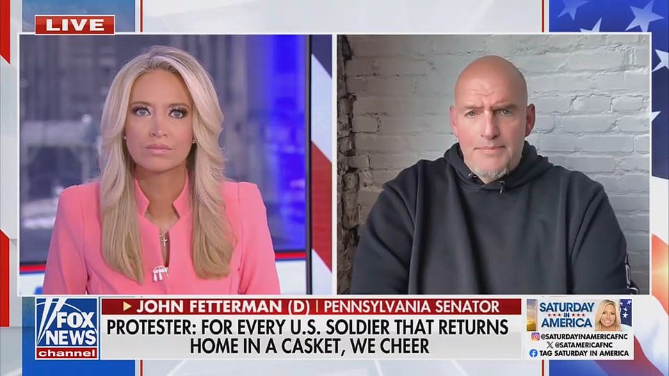 ‘For every US military base that crumbles and for every US soldier who returns home in a casket, we cheer,’ a masked speaker told the crowd at the time. The anti-America rally was condemned on Thursday by Fetterman, who called the remarks ‘Truly appalling,’ on X. Fetterman also wrote on X at the time, ‘These [expletive] chanting [sic] for the death of our servicemembers.’ ‘Where’s the Dem outrage and condemnation?’ he asked. Across the aisle, Texas Senator Ted Cruz quickly responded to Fetterman. ‘Very good Q,’ Cruz posted, also calling the demonstration ‘sick’ in a separate post.