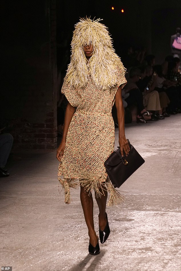 The models were seen strutting their stuff today in the bizarre headgear during the Bottega Veneta collection show for Womenswear Spring/Summer 2025