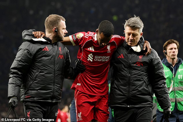 Alexander Isak was forced off with an injury just moments after scoring Liverpool’s opener against Tottenham in London.