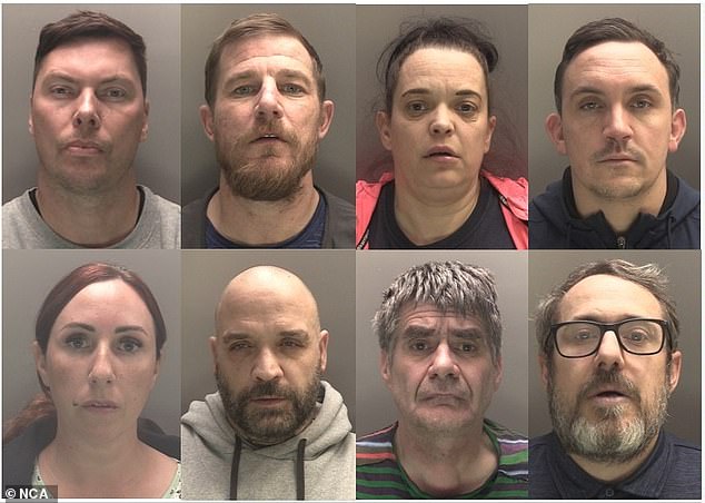 Eight members of a Liverpool drug gang have been sentenced to more than 63 years in prison (Pictured – Paul Lockyer, Stephen Lynch, Julie McCafferty, Paul McCardle, Michelle Higgins, Lee Nugent, James Neary, Christopher Horrocks)