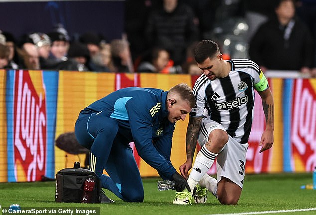 ‘He’s a little bit sore and there’s a little bit of swelling around his ankle,’ Newcastle boss Howe said after the match. ‘We hope it’s not serious but it’s difficult to know.