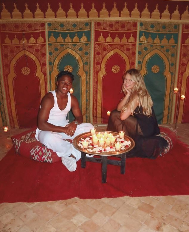 He was pictured alongside new wife Gabriely Miranda, 24, while the pair were sat on cushions inside a tent, with an array of lit candles sat on a nearby table adding to the romantic atmosphere.
