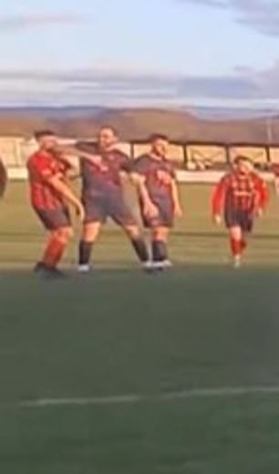 They posted on Facebook on Sunday: ‘North Wales Police are aware of a video circulating online relating to an incident that occurred at a football match between Treaddur Bay FC and Porthmadog FC on Saturday (17 January).