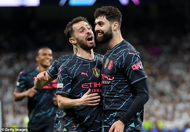 ‘We were in a good position and (Federico) Valverde did that,’ Guardiola said of Real’s late equaliser afterwards. ‘What can you do about it? Give a round of applause and accept it. The feeling I have with Real Madrid is it doesn’t matter how good you play, they will always score a goal.’