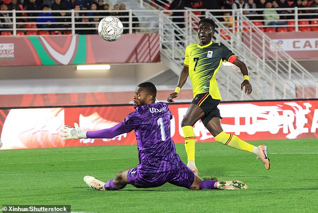 Uganda striker Rogers Mato scores for his nation against Nigeria in the Africa Cup of Nations