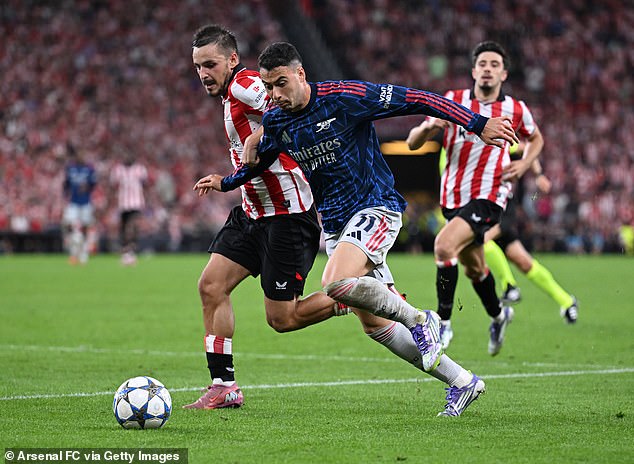 Gabriel Martinelli drove at Athletic Bilbao full back Andoni Gorosabel on Tuesday night and produced an assist for Leandro Trossard