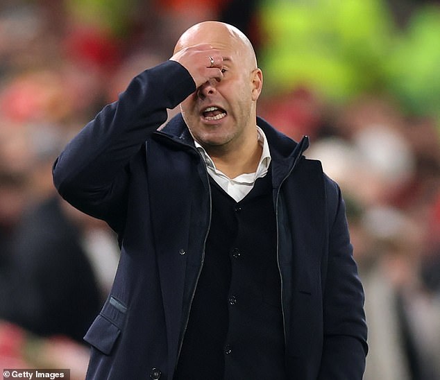 If you doubt that last line, look at the empty seats on Wednesday at full-time, listen to the boos. Or look at a poll on social media that asked the simple question: ‘Slot – in or out?’ Of the more than 7,000 voters – most, but it must be said not all, Liverpool fans – 71 per cent wanted him gone.