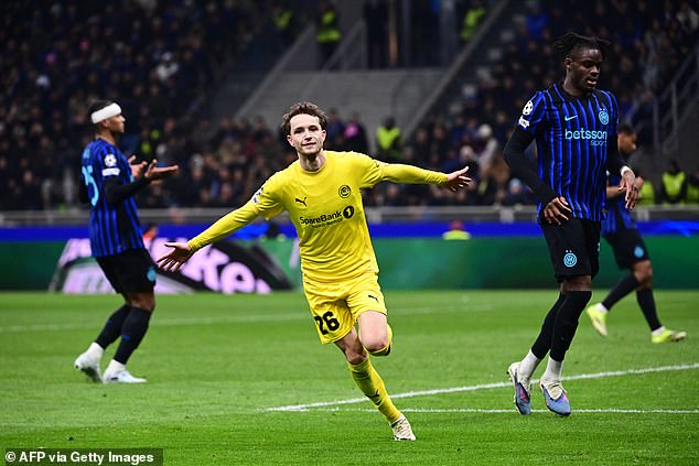 Their dream night only got better 14 minutes later when Hauge turned from scorer to provider to find Evjen, who smashed the ball past Sommer to kill Inter’s hopes of a comeback stone dead.