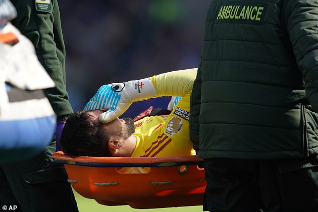 But Mamardashvili now looks set for a period on the sidelines himself after being taken off on a stretcher by Liverpool’s medical staff following Beto’s equaliser in the second half.
