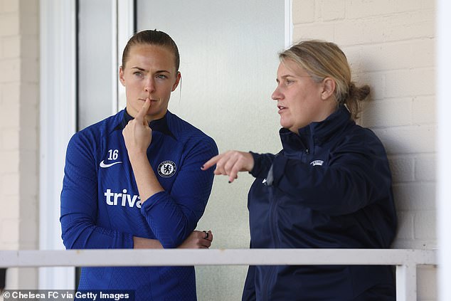 Former Chelsea star Magdalena Eriksson (L) has admitted she was ‘shocked’ by Emma Hayes’ (R) comments about team-mate relationships