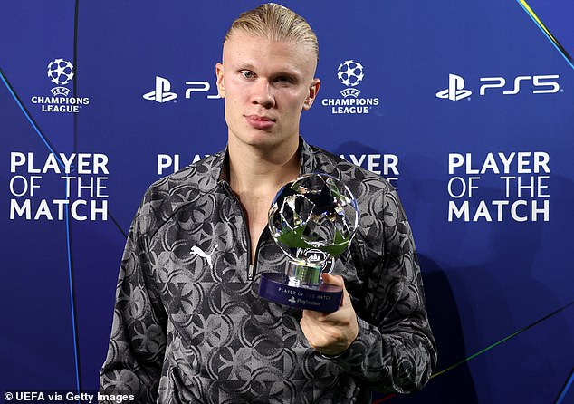 Haaland scored twice for City as they drew 2-2 at Monaco in the Champions League, earning him the player of the match award as a result.