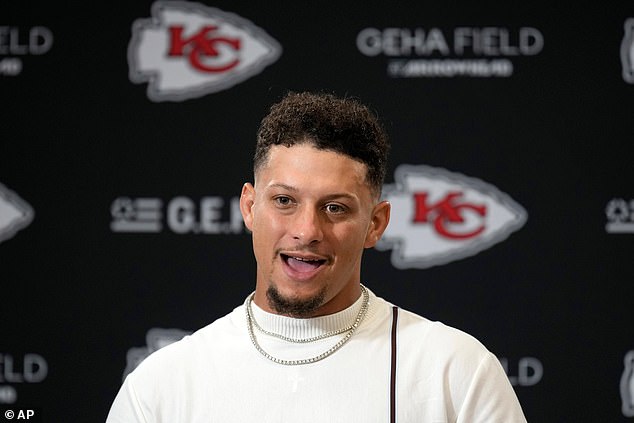 ‘Oh, yeah, for sure. I’m super excited. I haven’t been able to hear the album yet, but I’m super excited to be able to do that,’ Mahomes told radio show ‘The Drive’ on 96.5FM in Kansas City.