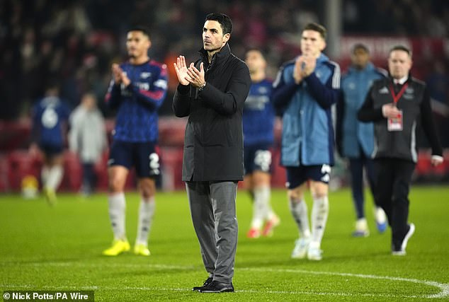The Gunners were held to a 0-0 draw at the City Ground against Sean Dyche’s resilient Nottingham Forest, meaning they stay seven points clear of Pep Guardiola’s men.