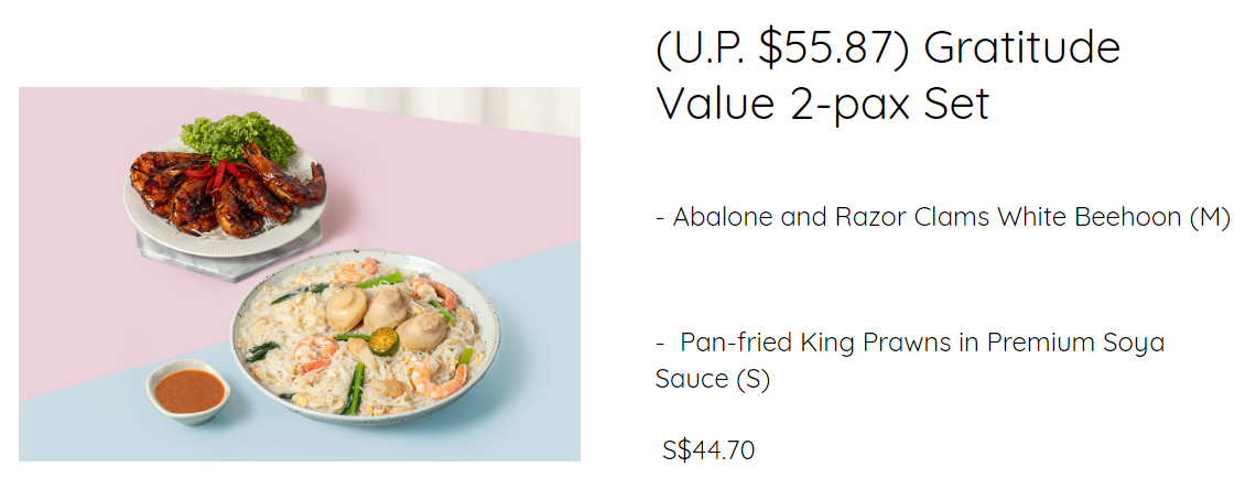 The prawns, which are part of the “Gratitude Value 2-pax Set”, were “overly salty” and “not fresh”.