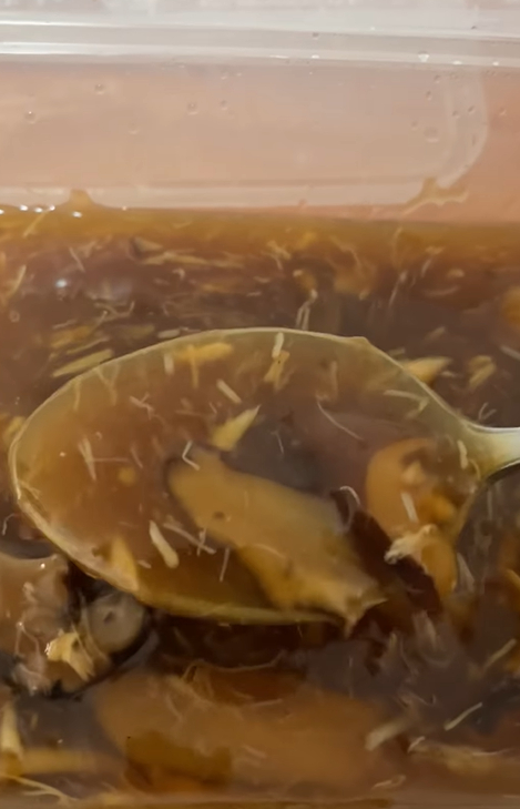 The braised crab meat with fish maw and sliced abalone soup supposedly for four persons, which cost S$47.08 before taxes and delivery costs, was enough to fill half a plastic container.