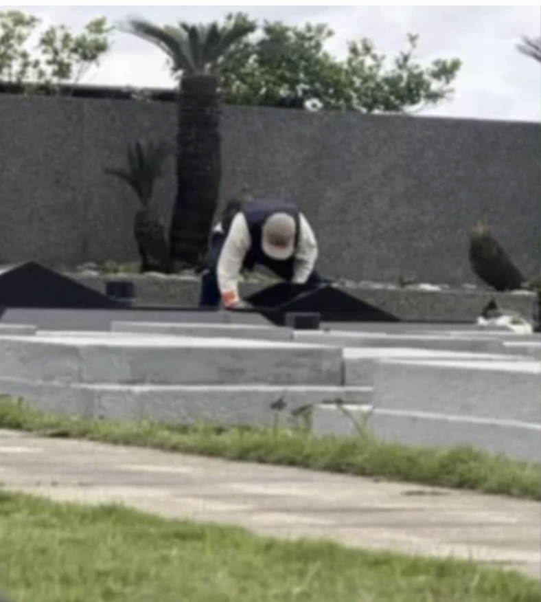 Witnesses said Koo had brought his own cleaning supplies and carefully scrubbed both the front and back of the tombstone.