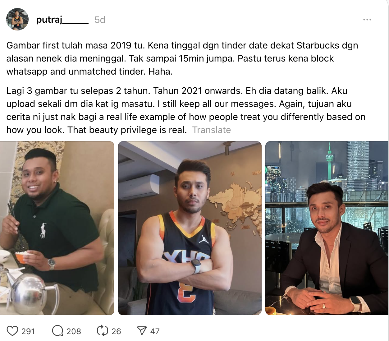 In light of her return, Putra wrote: “The purpose of my story is just to give a real life example of how people treat you differently based on how you look. That beauty privilege is real.”