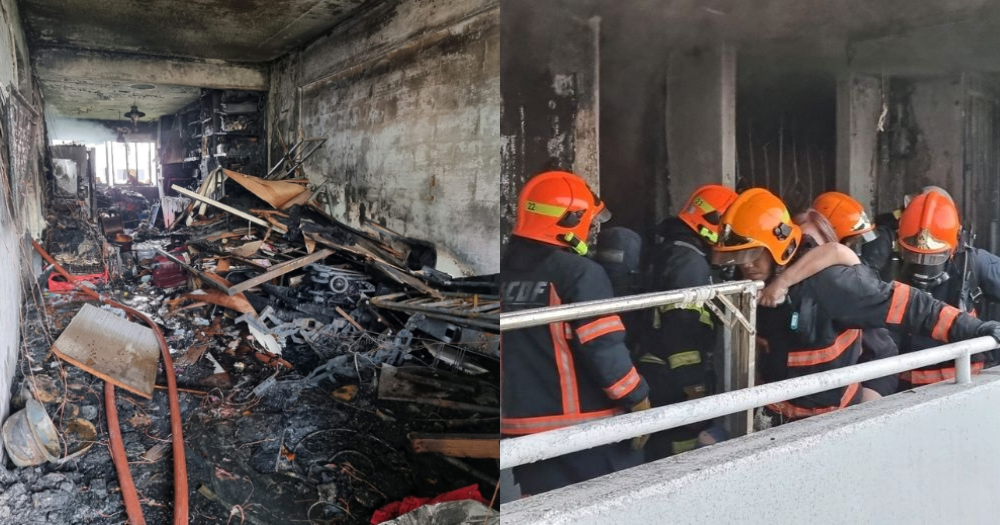 The Singapore Civil Defence Force was alerted to the scene by neighbours at around 6:30am, and firefighters extinguished the fire by 7:05am.