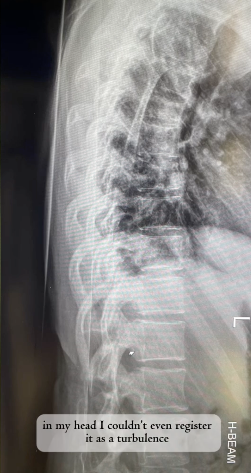 She backed up her account with photos of her spine X-ray as well as images of herself in the hospital.